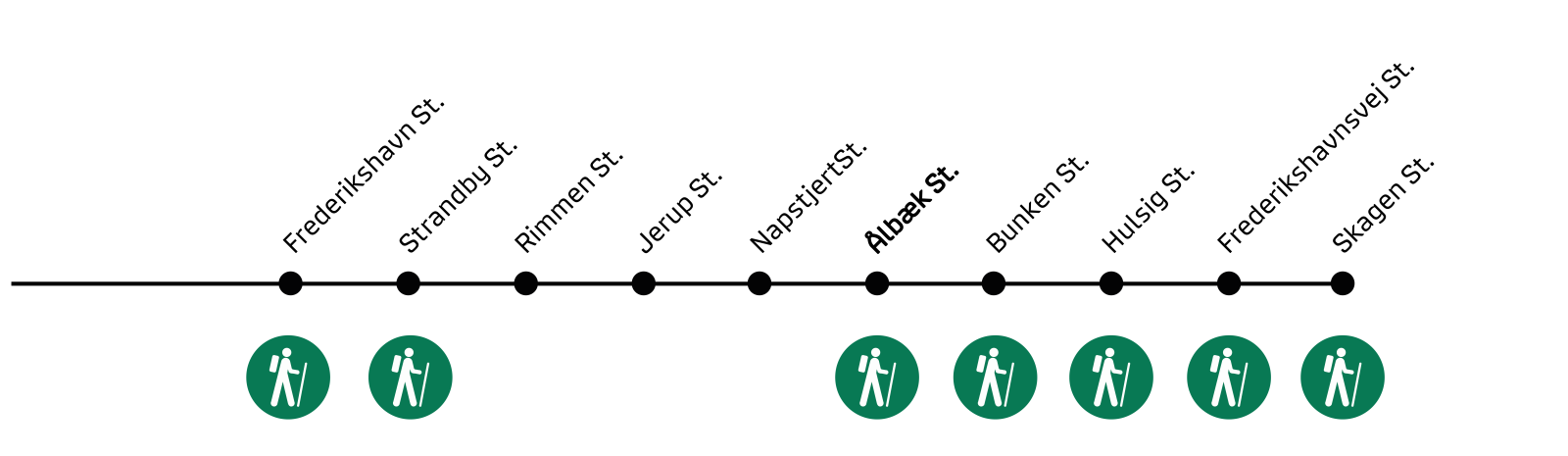 "Find togrejsen til rutens start" kan vise dig vej til rutens startpunkt.