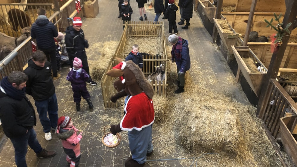 I staldene er der pyntet med gran og varme farver, og dyrene kan opleves i deres vinterklæder. Børn og voksne kan følge fodringen, iagttage dyrenes adfærd og stille spørgsmål til personalet, der kender hver en ged og pony. De små detaljer – dampen fra mulerne, halmens knitren og de røde sløjfer – skaber en stemning, der gør besøget både sanseligt og jordnært.
